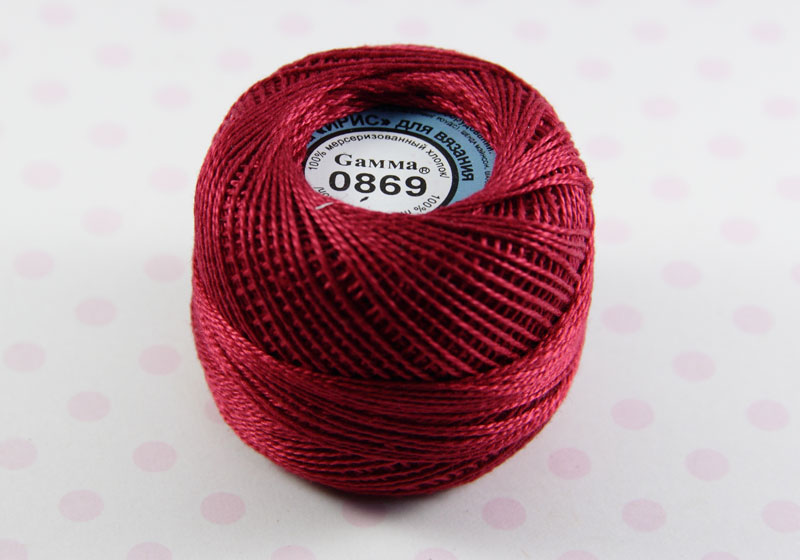 Цена за 1 моточек. Пряжа Ирис Гамма №0869 вишневый 100% хлопок - 10 г. в моточке. Длина нити, м: 87±2 м