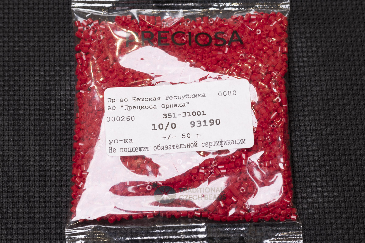 Бисер Чехия рубка 10/0 50г 93190 непрозрачный красный