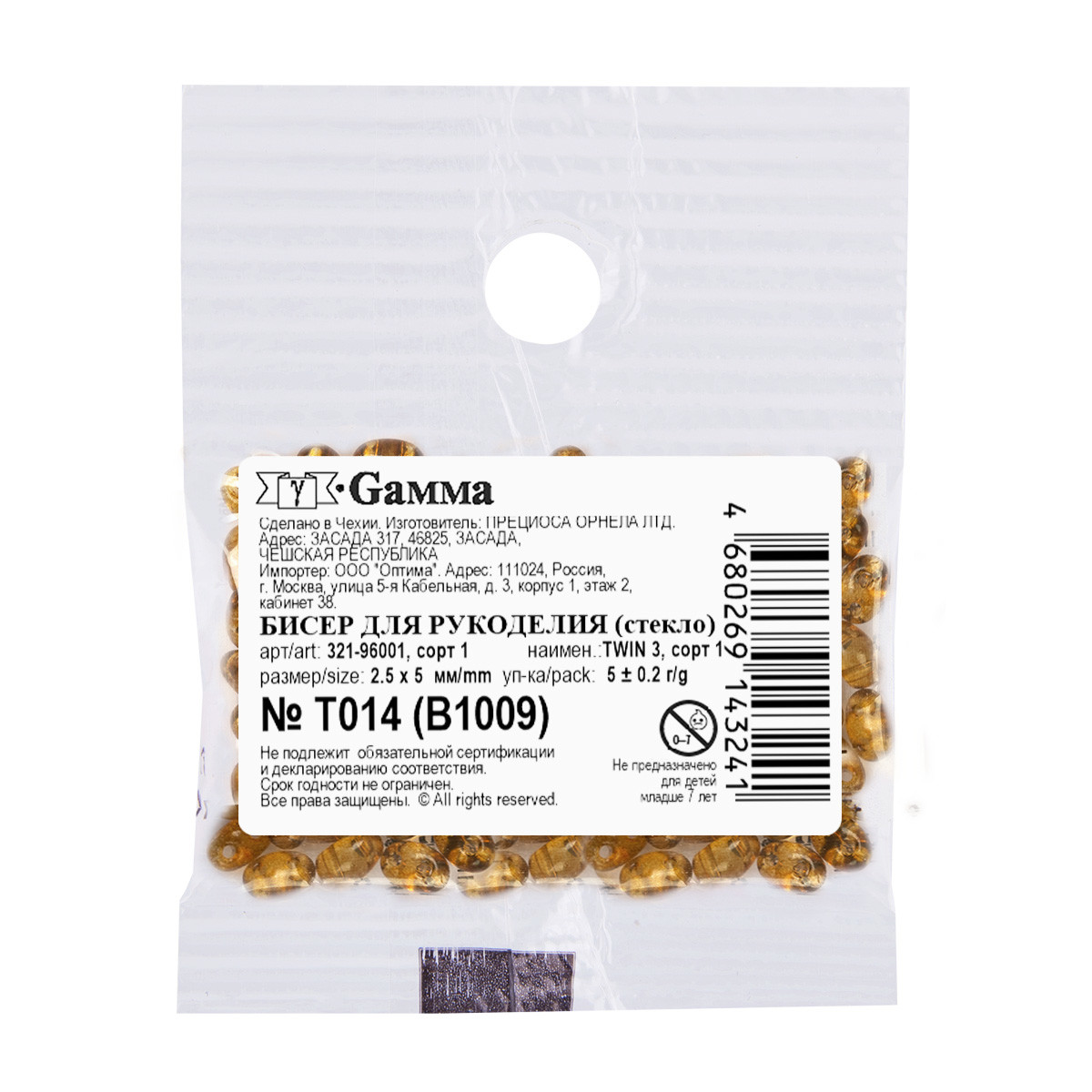 Бисер Чехия " GAMMA" TWIN 3 321- 96001 2. 5 x 5 мм 5 г 1- й сорт T052 т. желтый ( 01182 )
