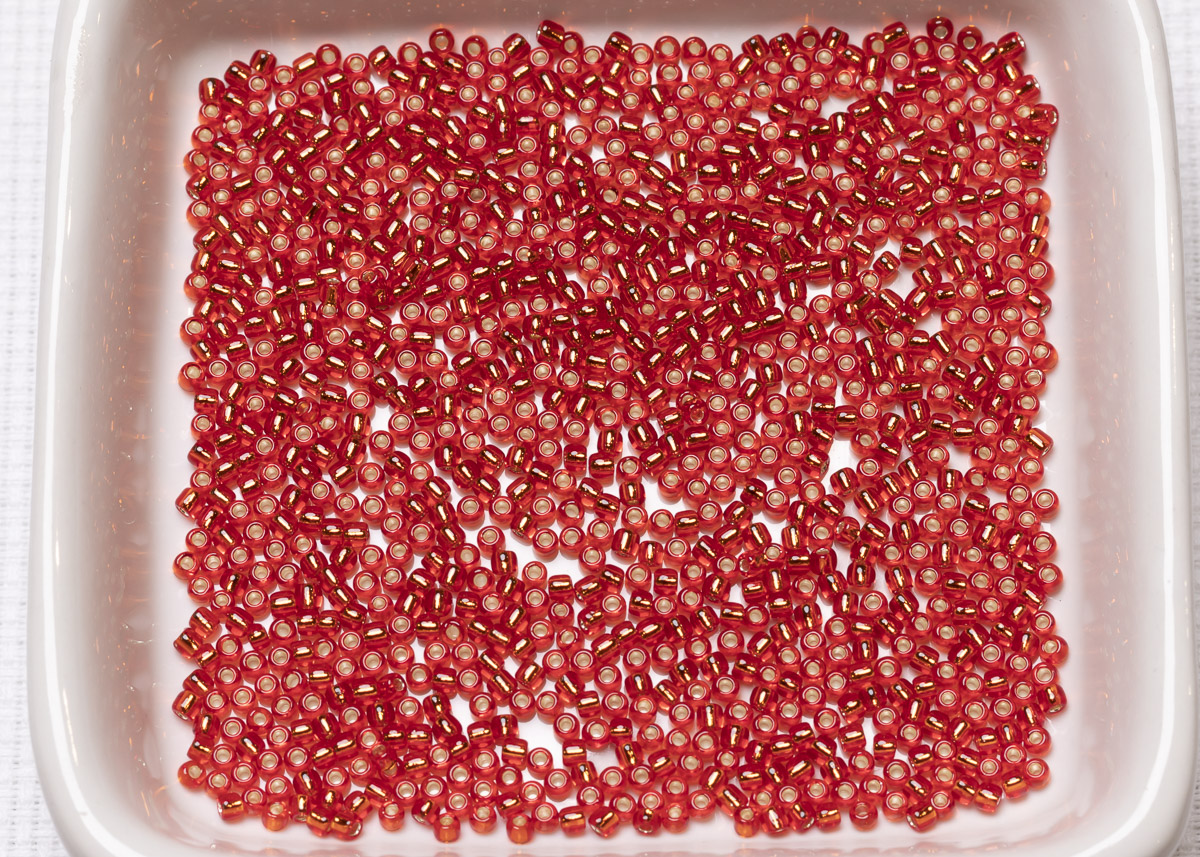 Бисер Япония круглый 11/0 10г 0025B Square/квадратное отверстие, сиамский рубин, серебряная линия внутри