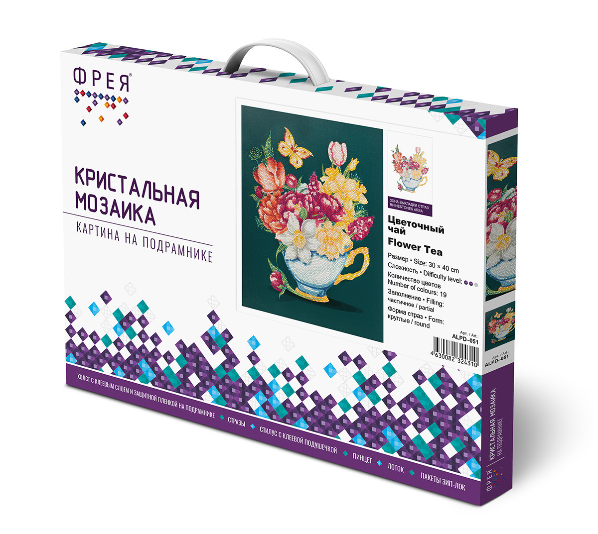 Набор по изготовлению картины на подрамнике в технике " Кристальная/ алмазная мозаика". В данном наборе холст уже натянут на деревянный подрамник, поэтому вам не придется оформлять его в багет. Готовую работу сразу можно поставить на полку или повесить на стену при помощи специального крепления. А благодаря тому, что под холстом находится подложка, возможность провисания основы при выкладывании картины исключается. Увлекательный процесс создания картины поможет развить мелкую моторику рук и отлично провести время за творческим занятием. Выполнение работы не требует специальных навыков, выкладывать картину очень легко и быстро. Стразы наклеиваются поверх изображения со схемой на уже нанесенный клеевой слой. Благодаря граненным акриловым стразам, неповторимый блеск готовой работы напоминает мерцание настоящих кристаллов! Картина станет замечательным украшением интерьера и придаст ему неповторимый антураж! В набор ТМ ФРЕЯ " Кристальная мозаика" входит:- тканая основа с клеевым слоем и защитной плёнкой, натянутая на деревянный подрамник с подложкой,- круглые стразы: 19 цветов, с запасом 20%,- стилус и восковая пластина,- пластиковый лоток,- крепление для подвешивания картины на стену,- пакеты с застежкой zip- lock для удобного хранения страз. Тип выкладки: частичная. Уровень сложности: 2 из 3. Размер готового изделия: 30 х 40 см . Размер упаковки: 31 х 41 х 2, 5 см. Сообщить о неточности в описании