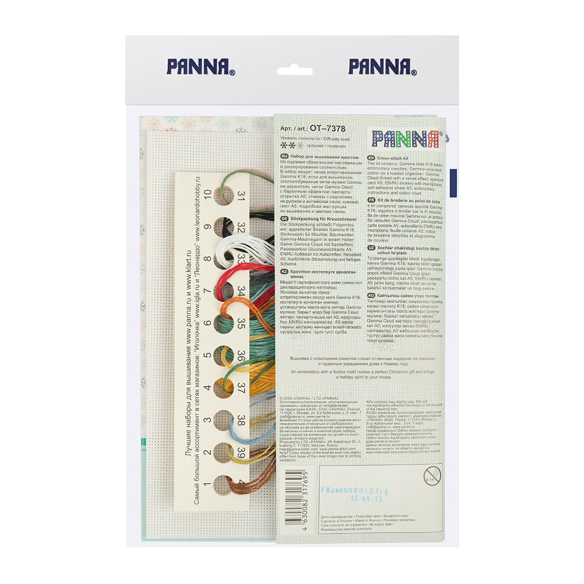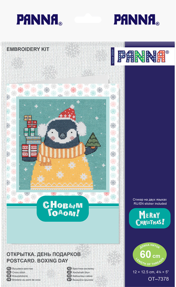 В набор для вышивания PANNA входит: аппретированная канва Gamma Aida 18, хлопчатобумажные нитки мулине Gamma, игла для вышивания Gamma, паспарту для оформления открытки, клеевой вкладыш А5 для оформления открытки, поздравительные стикеры для паспарту на двух языках, цветная схема и инструкция по вышиванию. Размер готовой открытки - А5, размер готовой вышивки: 12 х 12. 5 см. Вышивка с новогодним сюжетом станет отличным подарком на праздник и чудесным украшением дома к Новому году.  Сообщить о неточности в описании