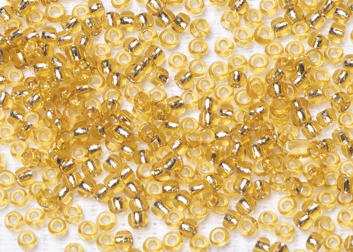 Бисер Япония круглый 11/0 10 г PF0022 гальванизированный, светлый топаз, серебряная линия внутри